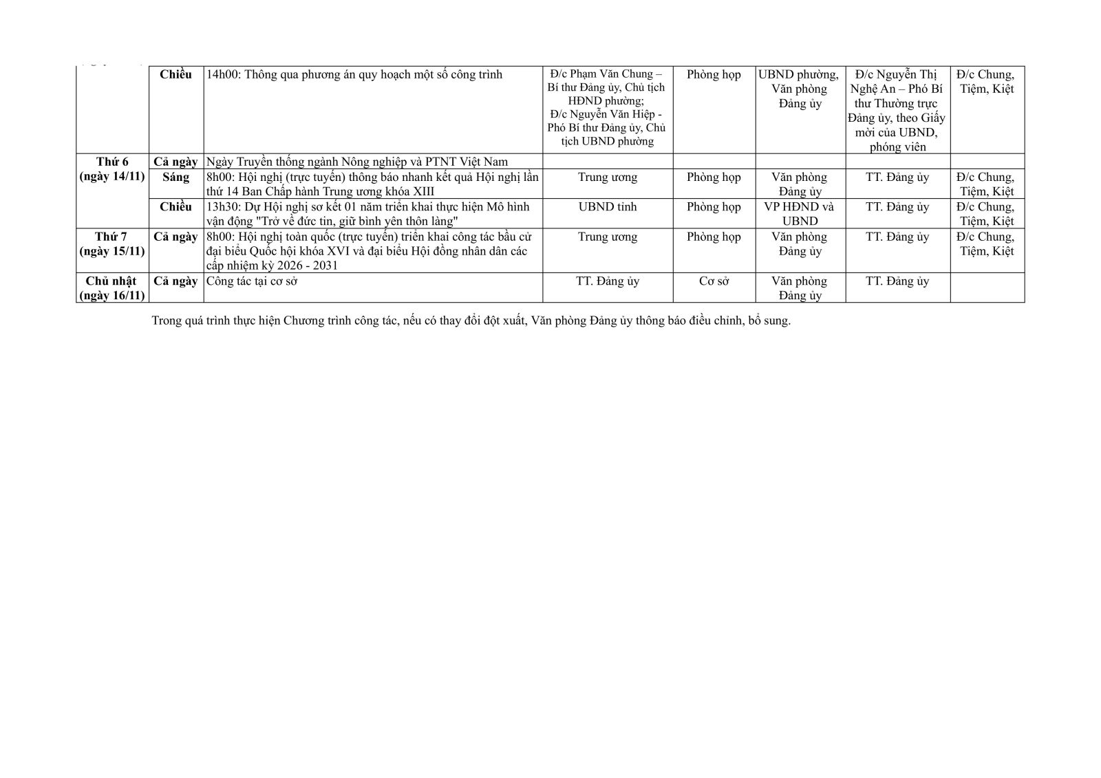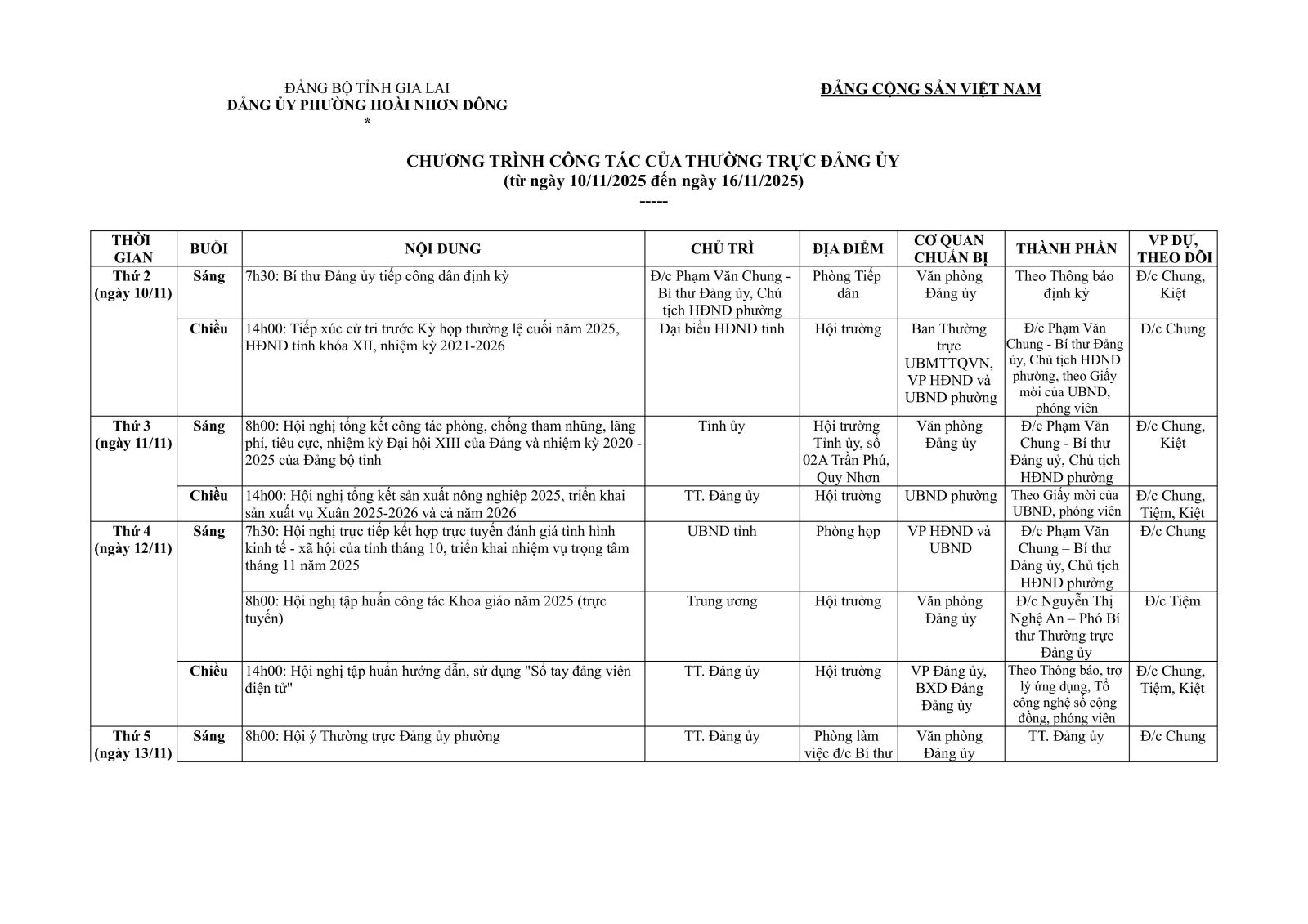 LỊCH CÔNG TÁC ĐẢNG ỦY