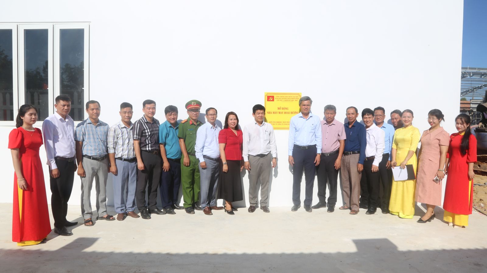 Các đại biểu gắn biển tại công trình mở rộng Nhà máy may Hoài Hương