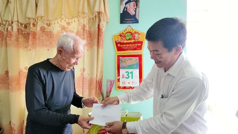 Trong ảnh: Bí thư đảng ủy phường Hoài Nhơn Đông trao quà cho ông Lê Nốt